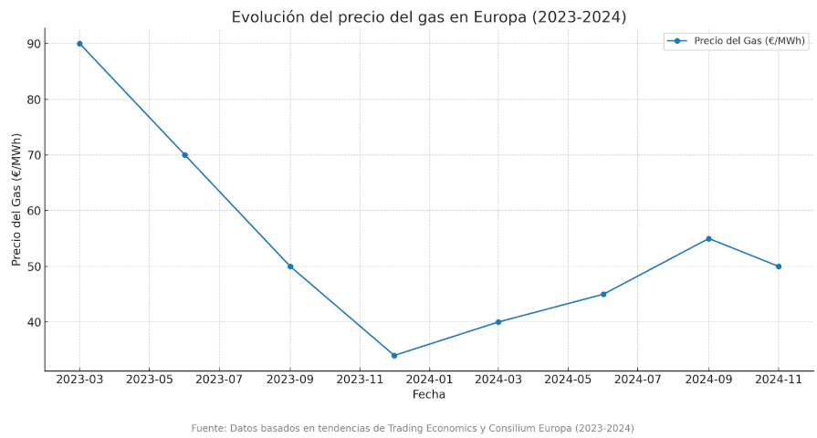 El precio del gas en Europa está experimentando un notable aumento debido a varios factores que han coincidido este mes. Por un lado, las reservas de gas, aunque aún elevadas, están disminuyendo más rápido de lo previsto, marcando el nivel más bajo para noviembre desde 2021. Esto, junto con un invierno más frío de lo esperado y una caída en la producción eólica en países clave como Alemania y Reino Unido, ha aumentado la demanda de gas para generación eléctrica, intensificando la presión en los mercados. Además, los problemas en los proyectos de gas natural licuado (GNL) están limitando la oferta global. Retrasos en infraestructuras clave, como los proyectos de TotalEnergies, y restricciones en Estados Unidos han reducido el suministro esperado para 2024. Esto ha llevado a Europa a convertirse en un mercado atractivo para cargueros de GNL, desviados desde Asia debido a los precios más altos en el continente, que se han disparado en noviembre por encima de los 48 euros/MWh.